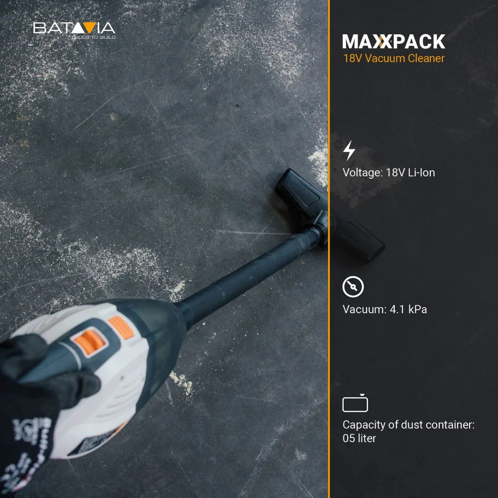 As part of the Maxxpack Collection, this vacuum shares its battery with 60+ other Batavia power tools. One battery. One charger. Endless possibilities.
