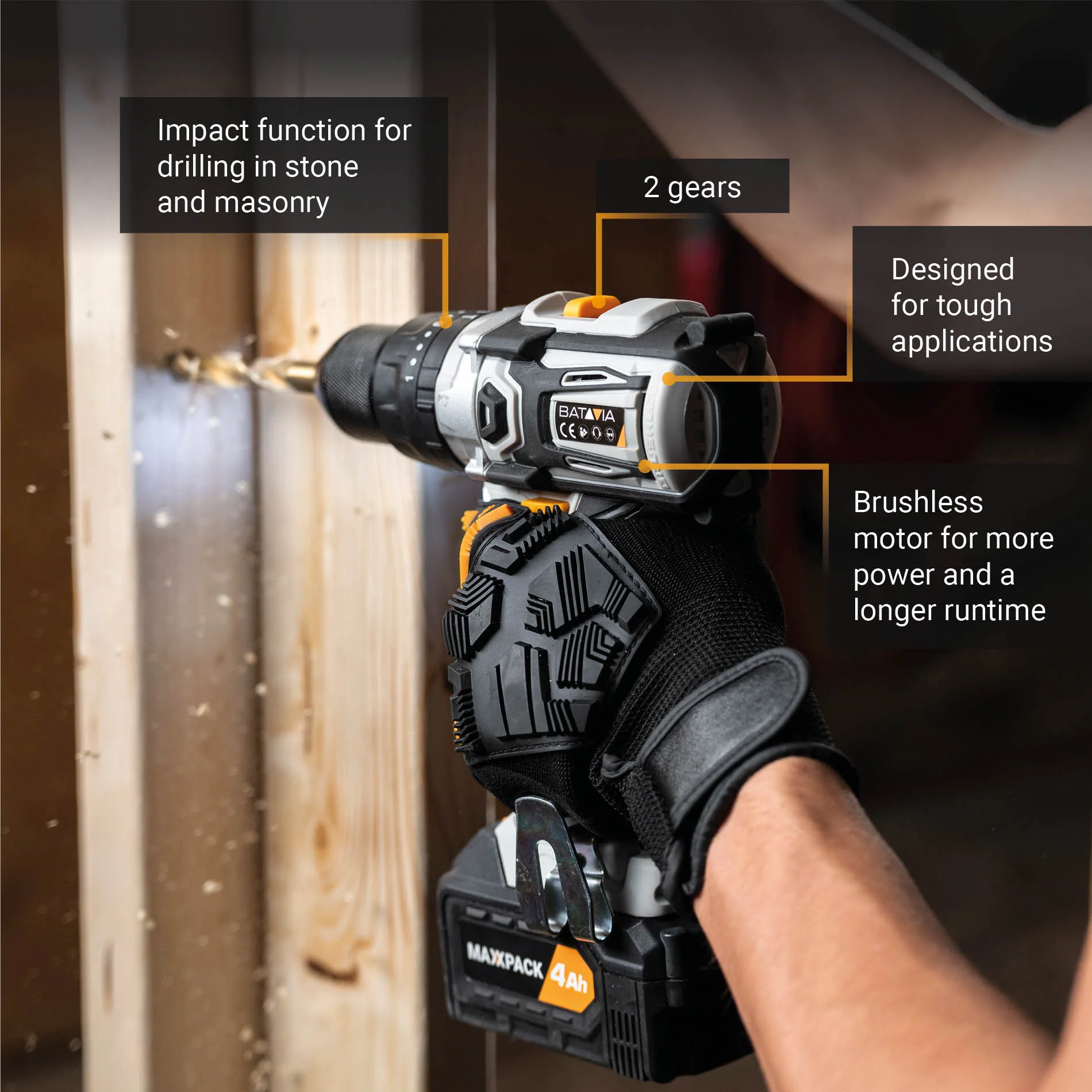 The Batavia Brushless Combi Drill is the ultimate tool for all your indoor and outdoor drilling needs. Whether you're tackling a home renovation project or assembling furniture in your garden shed, this combi drill provides the power, control, and durability you need.