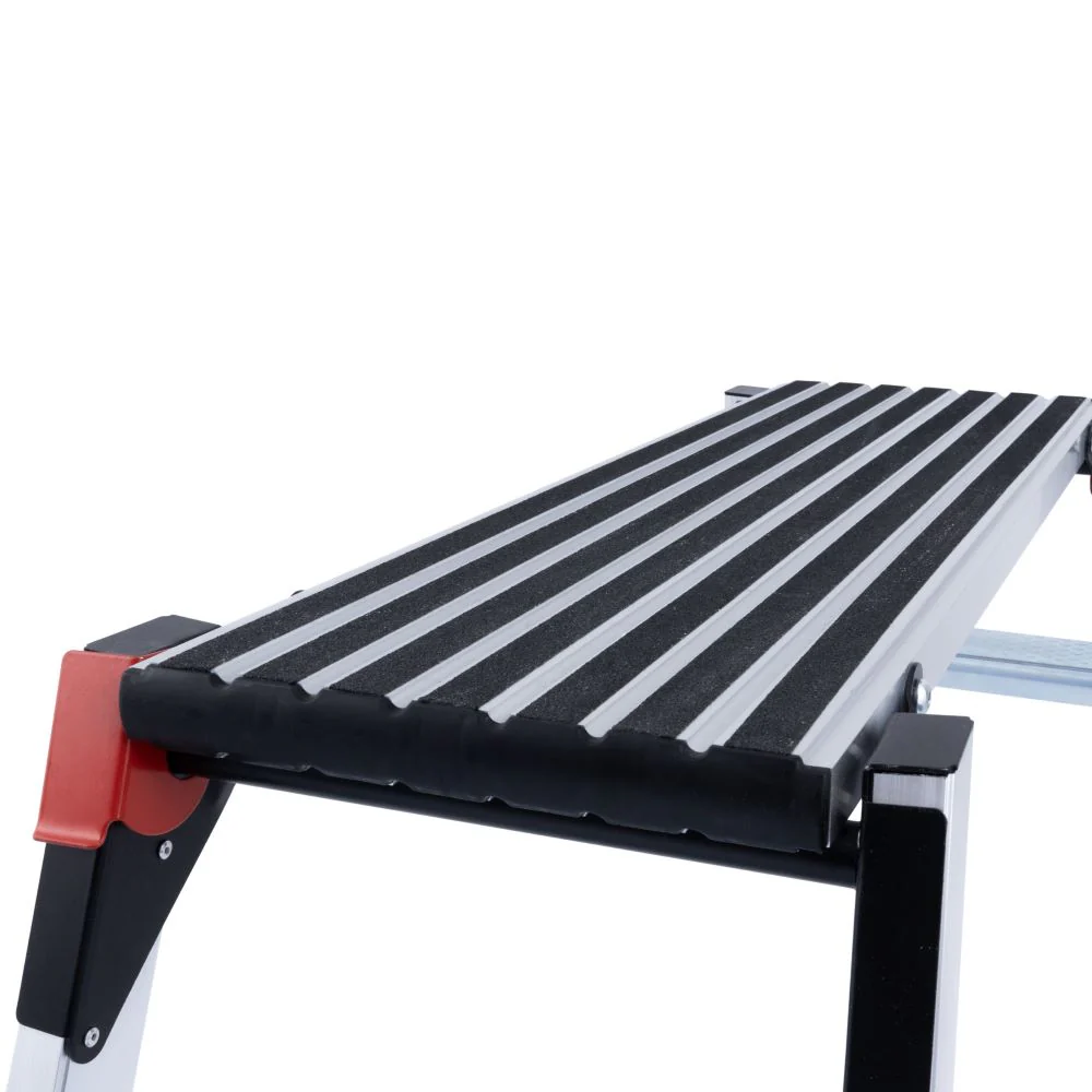 The wide platform with anti-slip strips offers a secure working surface, giving you peace of mind when working on uneven terrain or delicate tasks. The double-sided access makes it even easier to reach your tools or reposition as needed.