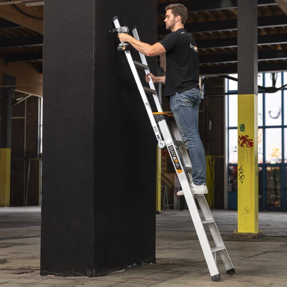 Need to get close to a wall or facade? Just switch to the leaning ladder mode. It rests firmly against vertical surfaces, giving you direct access without needing a second person or extra setup.